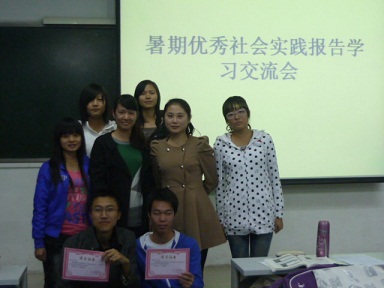 此次交流会有六份暑期优秀社会实践报告参加了交流。六位同学以PPT的方式配上各自的解说介绍了自己的社会实践项目,分享了对社会实践的感受并诉说了在社会实践中的收获。2009级张博蓉与同学们分享了自己在精艺股份有限公司的工作经历与收获,并就职场应该注意的事情给了同学们一些建议;2010级杨崇财讲述了他通过在家乡搞农村书籍文化建设调查,了解到农村书籍缺乏的现状,并在调查过程中懂得了怎样制作调查表以及怎样更好地与人交流。其他四位同学分别以暑期数学建模培训、母校演讲、热爱书吧、车间实习为题材与同学展开学习交流。最后,袁艳玲老师给这六位同学颁发了荣誉证书。本次交流会圆满结束。