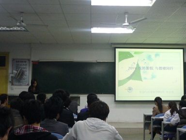 11月22日晚7:30,PA集团官网2011年暑期优秀社会实践报告学习交流会在9教202举行。PA集团官网学工室老师袁艳玲以及大二、大三的学生代表和大一全部新生参加了此次交流会。会议由曾曼璐同学主持。