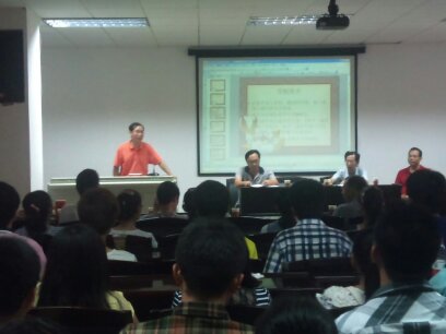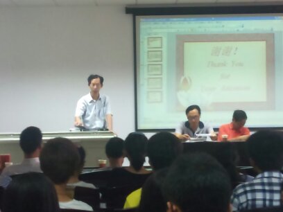 教师代表许友军老师用两个生动的故事告诉同学们数学不是高不可攀的,大学生也能解决世界数学难题,并且数学也是魅力无穷的,鼓励同学们以积极的态度面对新的环境,坚定信念,学会思考。