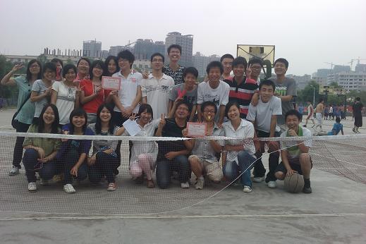 本次比赛以班级为参赛单位各组一支队伍,每支队伍由20名同学组成。比赛以增进友谊,构建和谐校园,活跃校园文化氛围为宗旨,同时也是欢送我院07级毕业生系列活动之一。活动得到了全院同学的广泛响应,参与人数众多,学工室陈艳老师、李广伟老师和全院同学一起在现场全程观看了比赛,并为队员们加油。