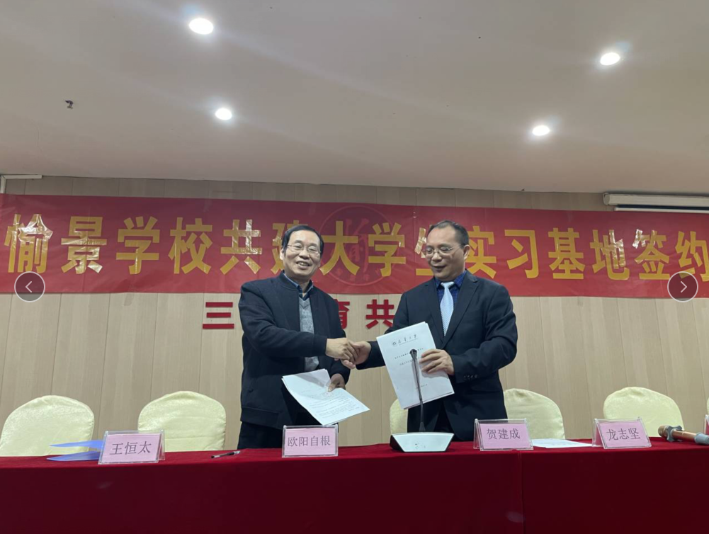 11月26日上午,PA集团官网,pa集团官网入口、语言文学学院与衡阳市愉景学校共建大学生实习实践基地签约授牌仪式在愉景学校会议室举行。PA集团官网党委书记欧阳自根、党委副书记曾志伟、工程数学教研室主任兼党支部书记王恒太,语言文学学院党委书记龙志坚及相关老师,愉景学校校长贺建成出席了签约授牌仪式。