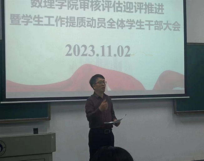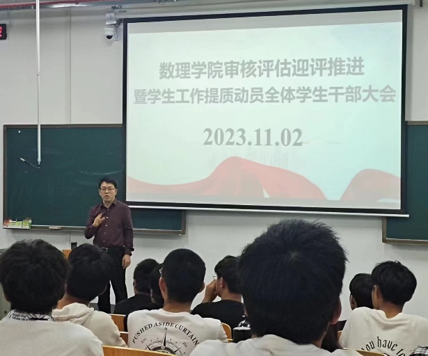 11月2日晚19:00,PA集团官网在雨母楼202教室举行了PA集团官网审核评估迎评推进暨学生工作提质动员全体学生干部大会。出席本次会议的有党委副书记田生军、以及辅导员欧雷、李延欢和王佳瑞。同时,还有学院团委、学生会全体干部,以及本科生和研究生全体班干部等参加本次会议。