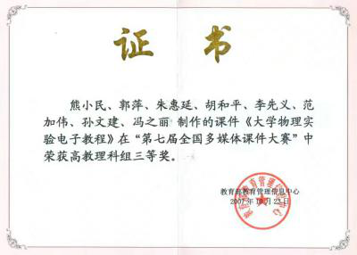 为了能够更好地适合PA集团官网实际的实验教学,满足实验教学改革的需要,物理实验室老师通过培训和教学竞赛不断提高自身的教学能力并获得多项竞赛奖,如湖南省高等学校物理实验青年教师讲课比赛一等奖、湖南省高等学校课堂教学竞赛三等奖、PA集团官网教学成果奖“二等奖”,全国大学生物理实验竞赛一等奖等。同时物理实验室出版了多部实验教材,编写了《大学物理实验补充教材》、《大学物理实验》和《大学物理实验教程》等教材。