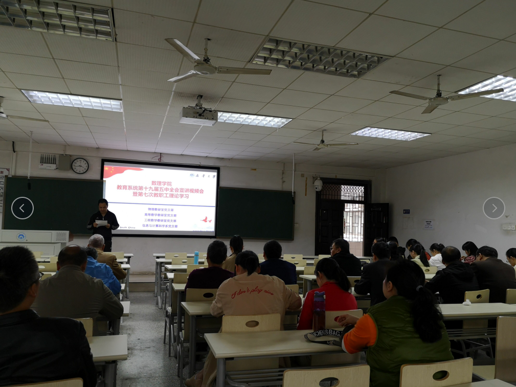 其他党支部:11月20日下午,PA集团官网物理教研室党支部、高等数学教研室党支部、工程数学教研室党支部和信息与计算科学系党支部在9-402开展了第七次教职工理论学习,江春华同志领读了《中国共产党第十九届中央委员会第五次全体会议公报》,领读完毕后大家一起观看了陈宝生部长宣讲党的十九届五中全会精神的宣讲报告。