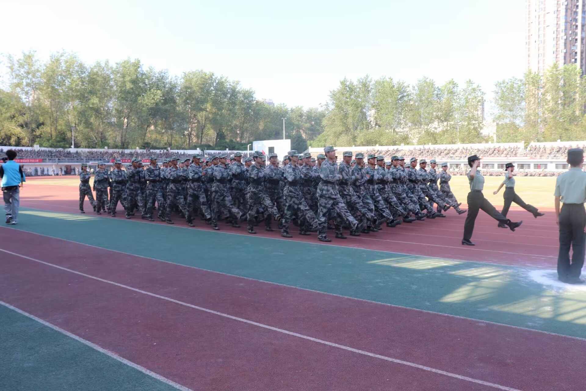 军训期间,24级新生顶烈日、战酷暑,磨练了意志,锻炼了品质。在教官的精心指导下,他们学会了站军姿、踢正步、走队列,从最初的稚嫩散漫到如今的坚毅果敢,完成了一次华丽的蜕变。今天,他们身着统一的迷彩服、迈着整齐的步伐、喊着响亮的口号,展示了数日军训的成果。