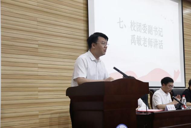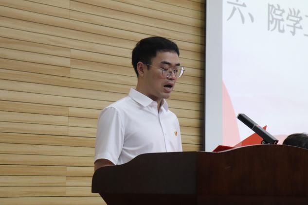 校学生会代表王紫怡同学从“新时代青年责任担当”的角度作了发言,她引用了习近平总书记的话,强调了新时代向青年的责任。校团委副书记禹敏在讲话中强调,青年人要永葆朝气蓬勃的精神状态,敢于迎难而上,勇于开拓创新。他特别指出,团学干部要练就过硬本领,以真才实学服务同学,以实干担当助力学院发展。学生工作部副部长郑宇从青年成长发展的角度,在讲话中指出,当代青年既要学会关爱自我,保持身心健康,又要乐于助人,传递温暖。他建议团学工作要更加关注学生心理健康,通过开展形式多样的活动,营造互帮互助、共同成长的校园氛围。