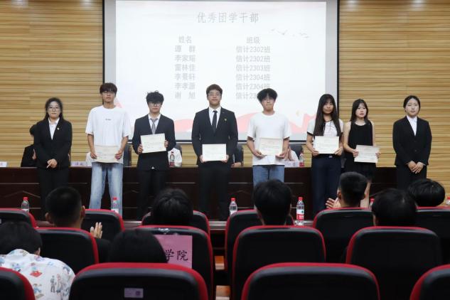 大会进入表彰环节,学院对本年度表现突出的集体和个人进行表彰。本次表彰设置“三好学生”、“优秀班干部”、“优秀部门”、“优秀干事”四个奖项,获奖代表依次上台领奖,现场掌声不断,气氛热烈。