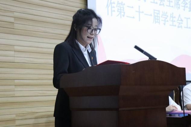 随后,第二十二届团委、学生会、学社联委员代表李景轩作为新任学生会主席郑重承诺,将继承优良传统,勇于开拓创新,带领新一届团学干部再创佳绩。