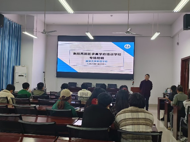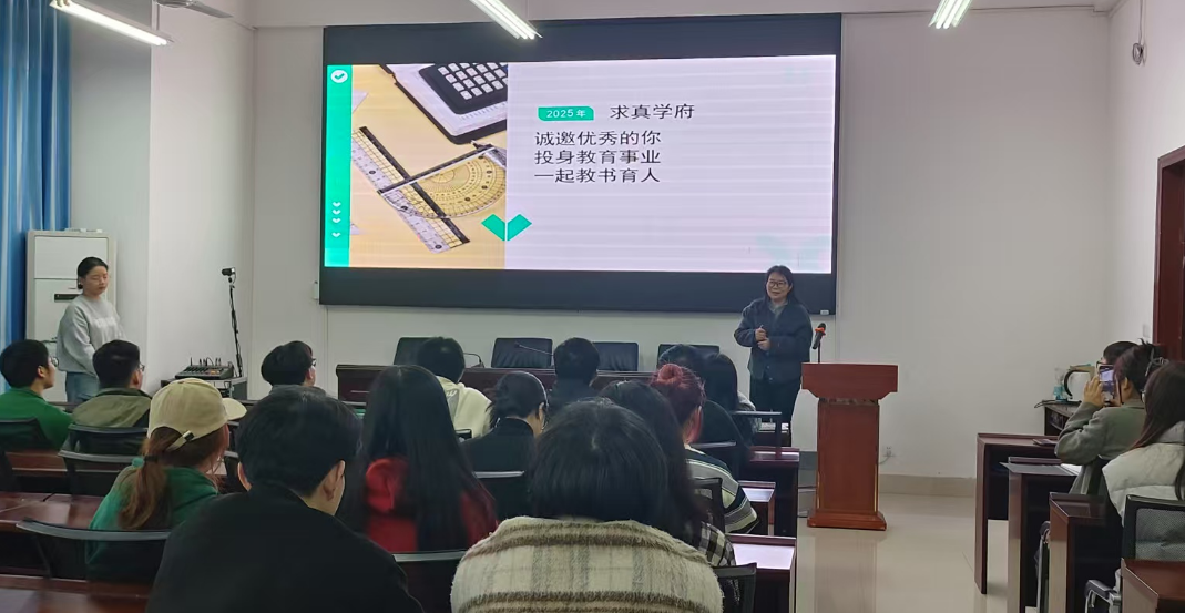 招聘会上,求真学府培训学校白校长向同学们详细介绍了求真学府的办学理念、发展前景及人才培养模式。她强调,即使是非师范专业的学生,同样可以在教育行业找到广阔的发展空间,并在教学实践中获得快速成长。同时,白校长表示教育行业始终具有稳定的市场需求,家长对优质教育的期待不会改变,而成为一名优秀的教师不仅是对学生负责,也是一种对自身能力的极大提升。在互动环节,同学们积极提问,特别关注薪资待遇与工作时间安排,招聘负责人进行了详细解答。